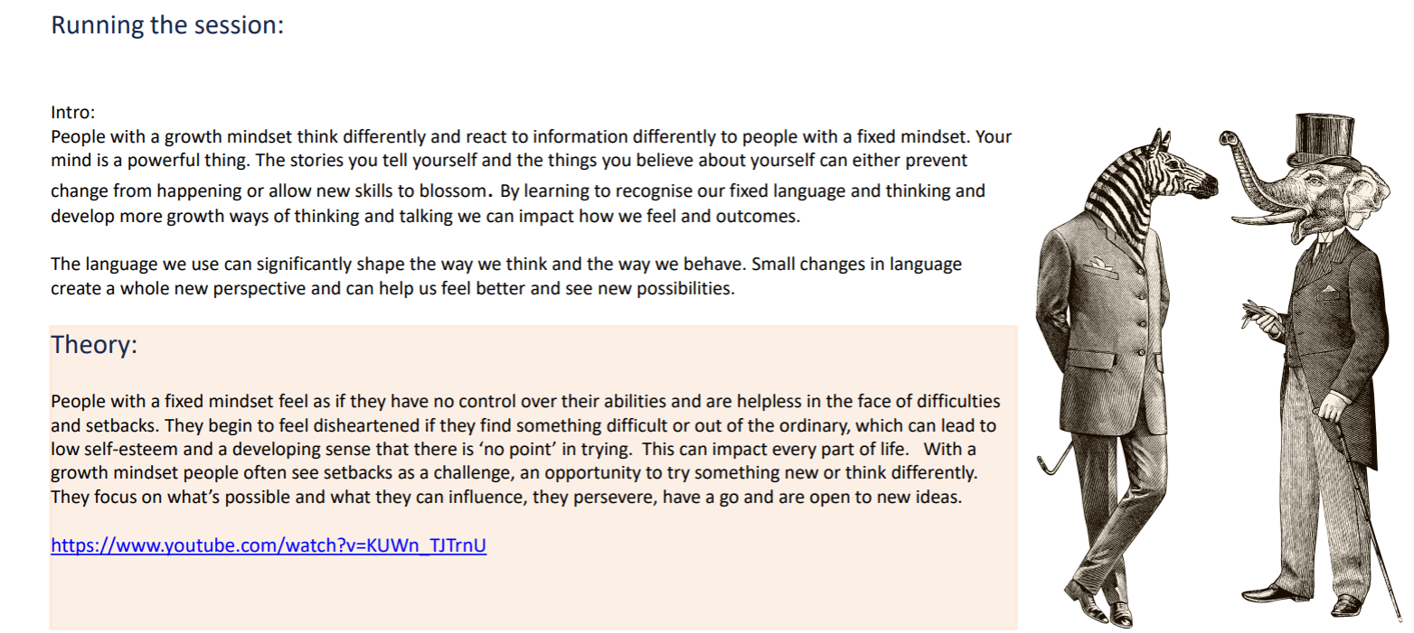 People with a growth mindset think differently and react to information differently to people with a fixed mindset. Your mind is a powerful thing. The stories you tell yourself and the things you believe about yourself can either prevent change from happening or allow new skills to blossom.