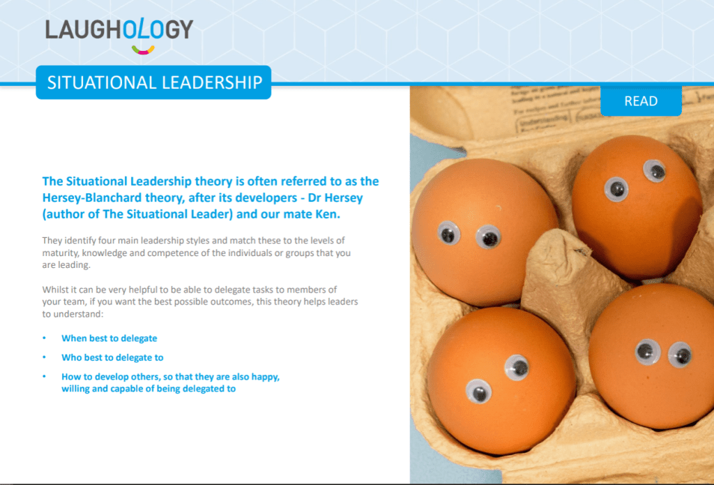The Situational Leadership theory is often referred to as the Hersey-Blanchard theory, after its developers – Dr Hersey (author of The Situational Leader) and our mate Ken.